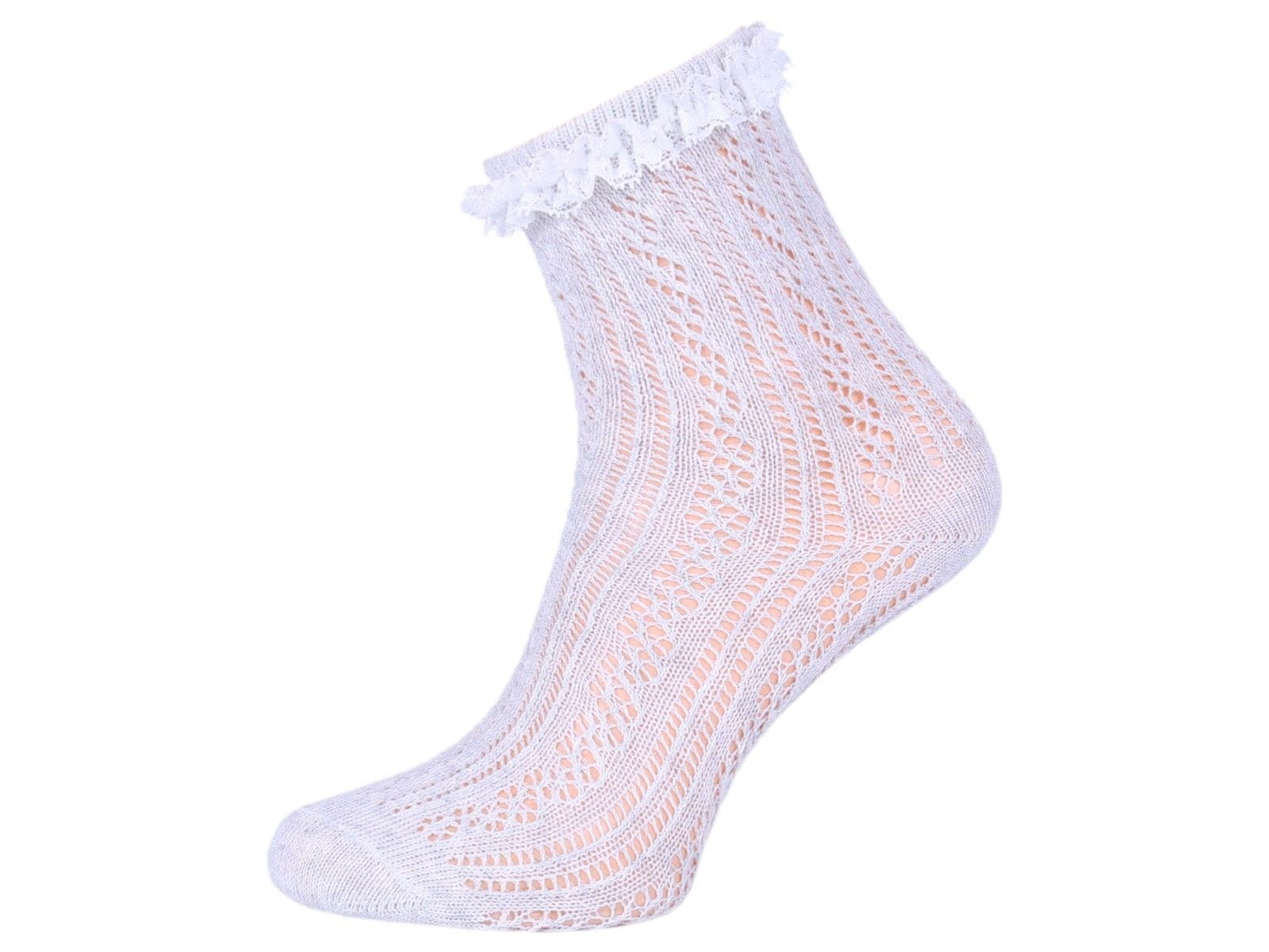 Komplet dveh parov elastičnih nogavic tipa stopalke, v sivem in roza odtenku.Nogavice imajo po celotni dolžini čudovit, prosojen vzorec, zgoraj pa so zaključene z okrasnim čipkastim volančkom.Izdelane so iz mehkega in prijetnega materiala na dotik. Sestava: Sive nogavice: 83 % bombaž, 16 % polieste Celoten opis