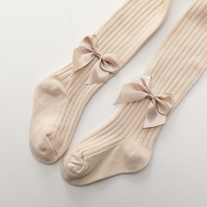 Bež rebraste otroške hlačne nogavice z pentljami 4–6 let Celoten opis