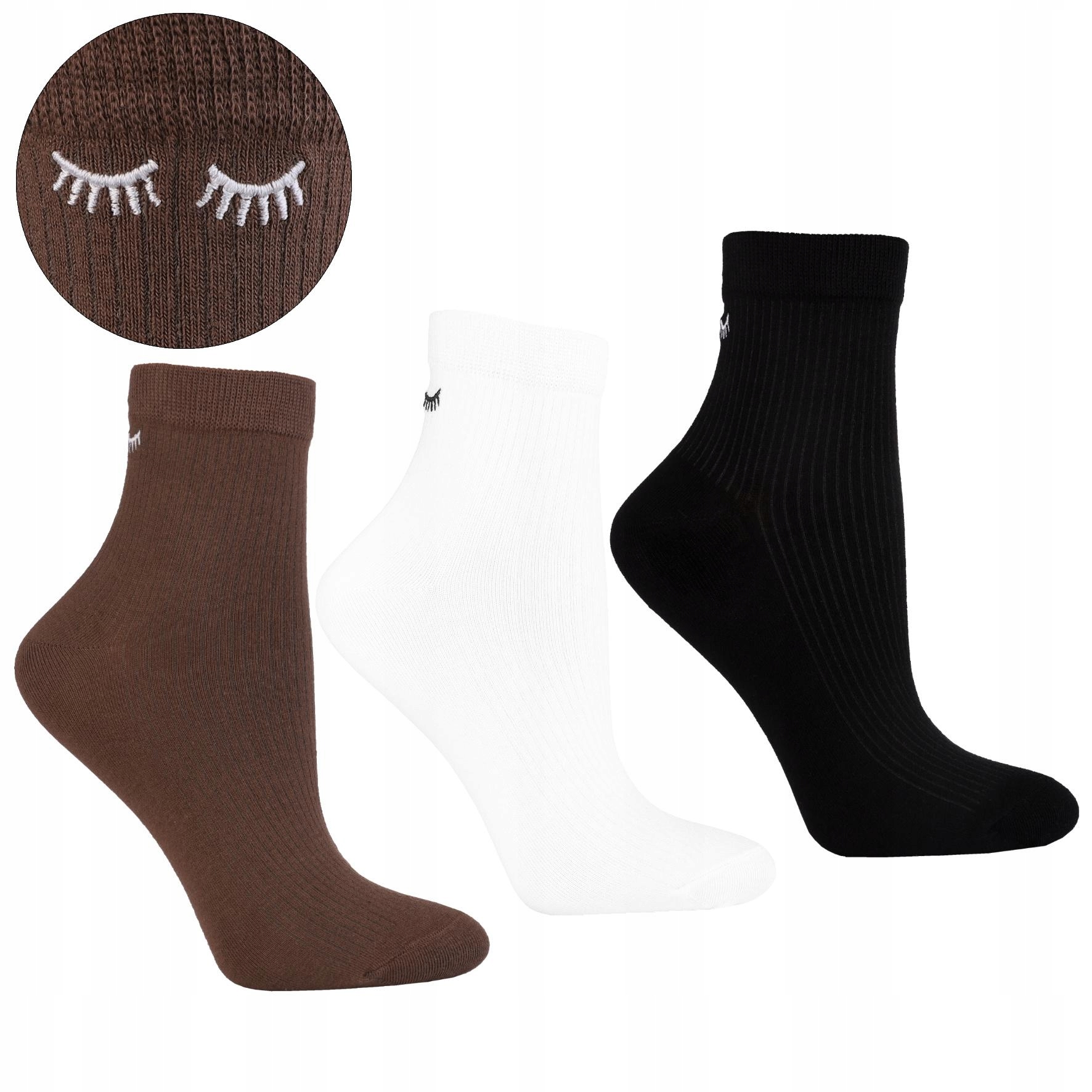 Ženske 3/4 nogavice do gležnjev, nežno rebraste, vezenine, 3-delni komplet, MORAJ 35–38 Celoten opis