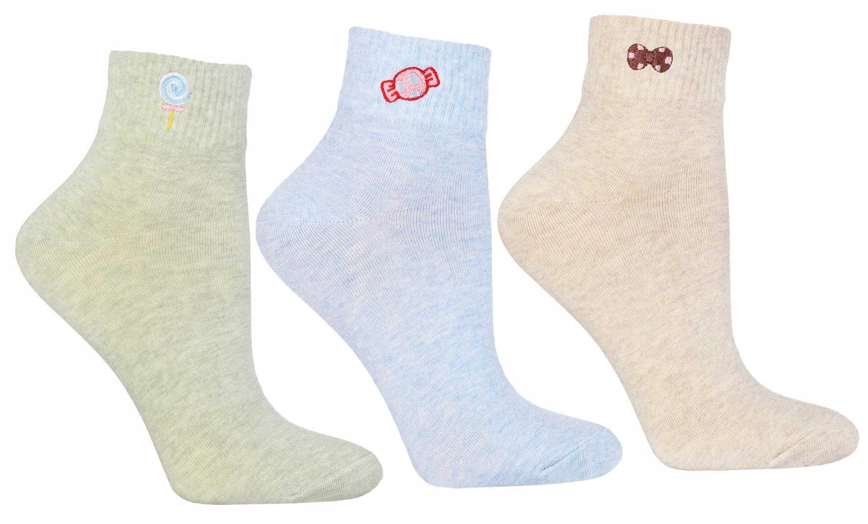 Ženske klasične nogavice do gležnjev s pisanimi sladkimi vezeninami, 3-paket MORAJ 35–38