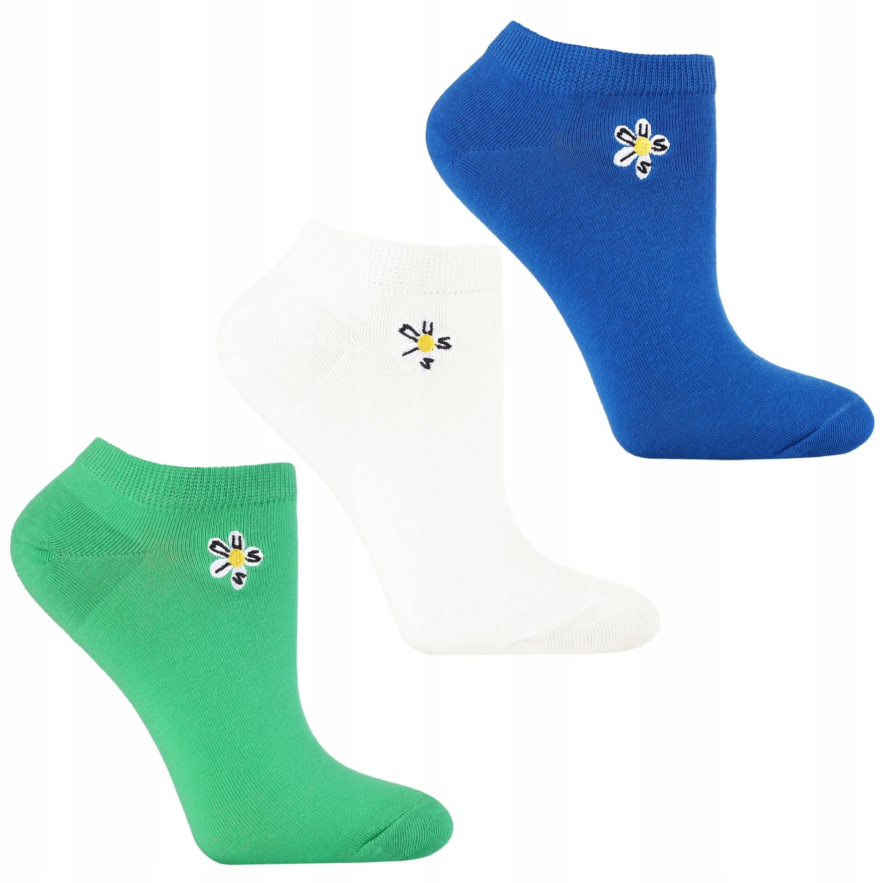Ženske gležnjarji z vezenino, barvite, klasične, MORAJ, 3 pari, velikost 35–38