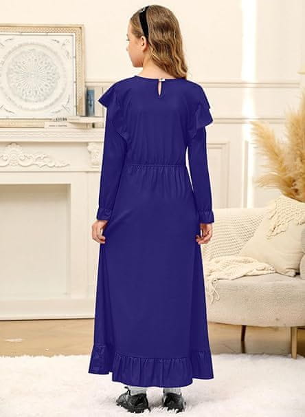 BesserBay Maxi obleka z dolgimi rokavi in volančki za deklice