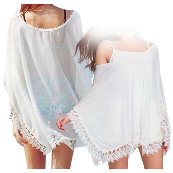 OGREVSKA OBLEKA TUNIKA PAREO POLETJE ZA PLAŽO BELA BOHO S ČIPKO IZ ŠIFONA