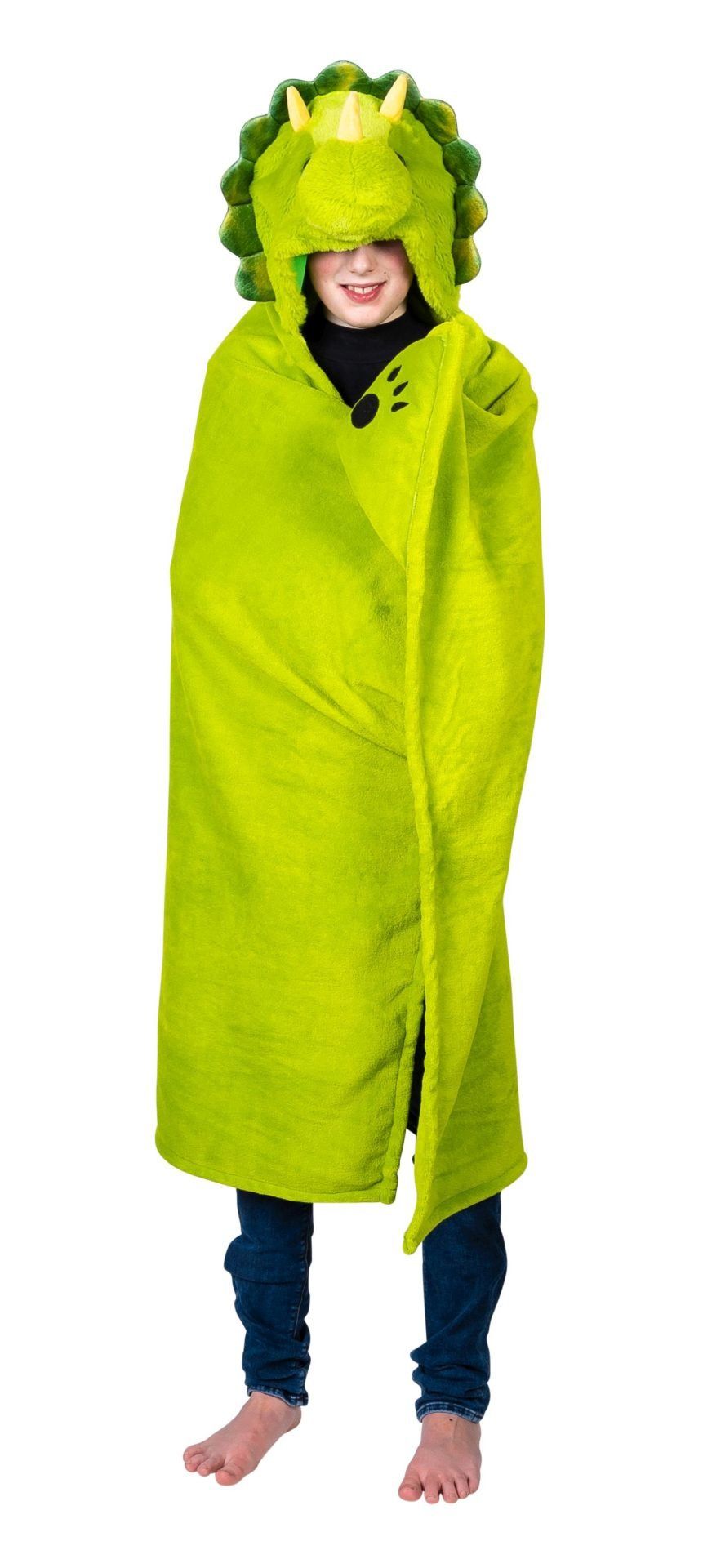 Cozy Noxxiez BL826 Dinozaver - topla odeja s kapuco z žepi za živali in tačke