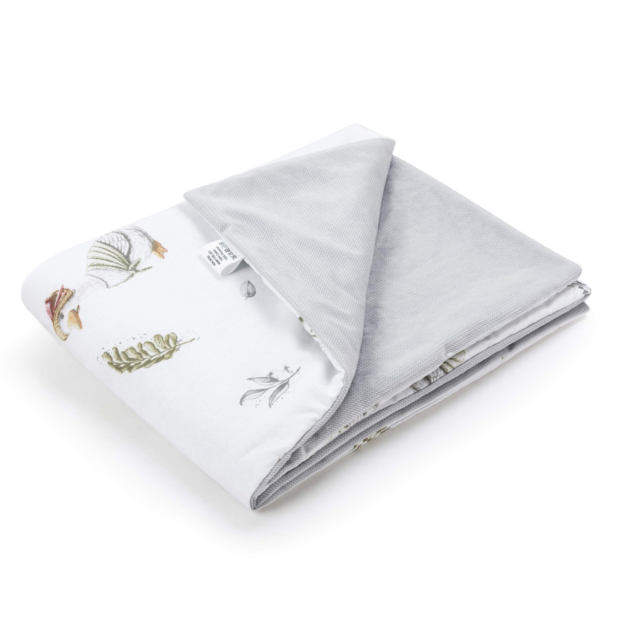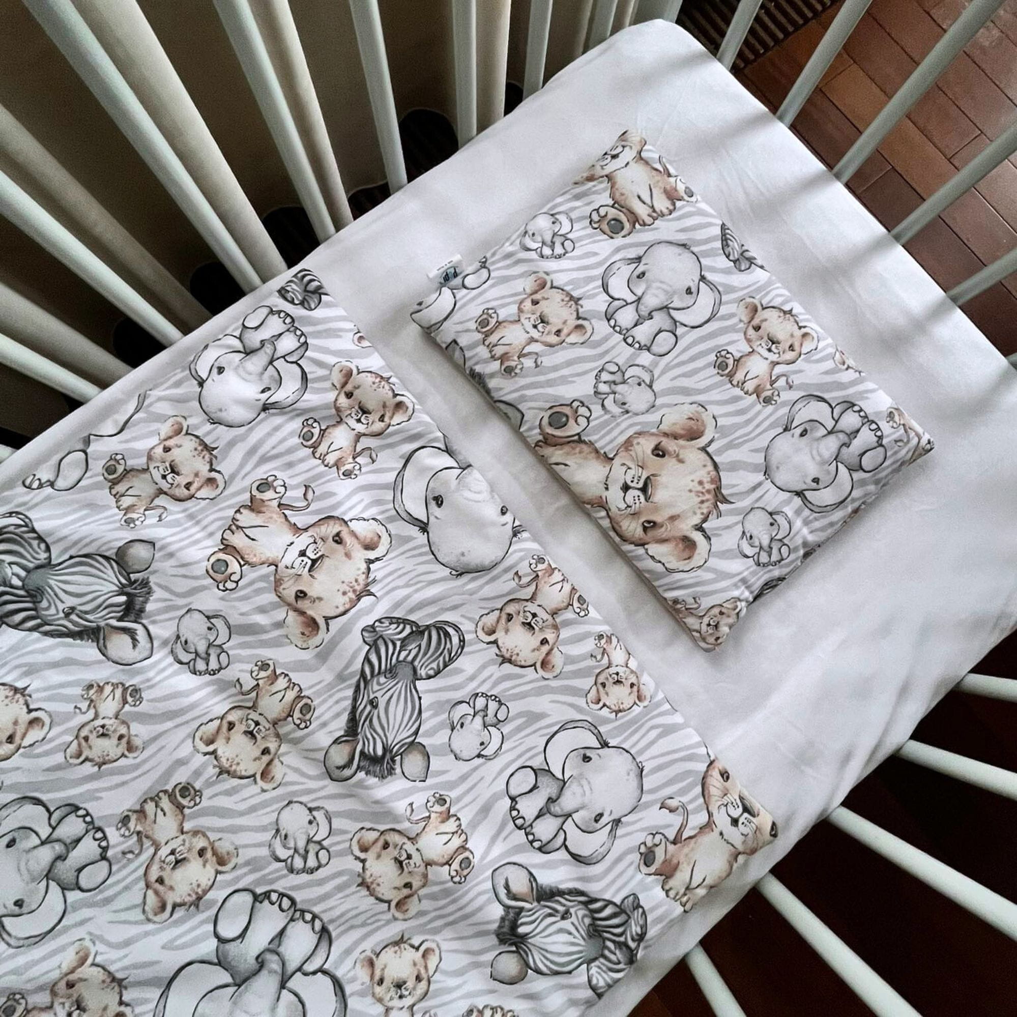 Polnilo odeje in vzglavnika je izdelano iz silikonskega flisa z antialergijskimi lastnostmi, ki zagotavlja ustrezno termoregulacijo, kar zagotavlja miren spanec vašega otroka. Polnilo je sešito skupaj z odejo, kar zagotavlja, da se med uporabo ali pranjem ne premakne.