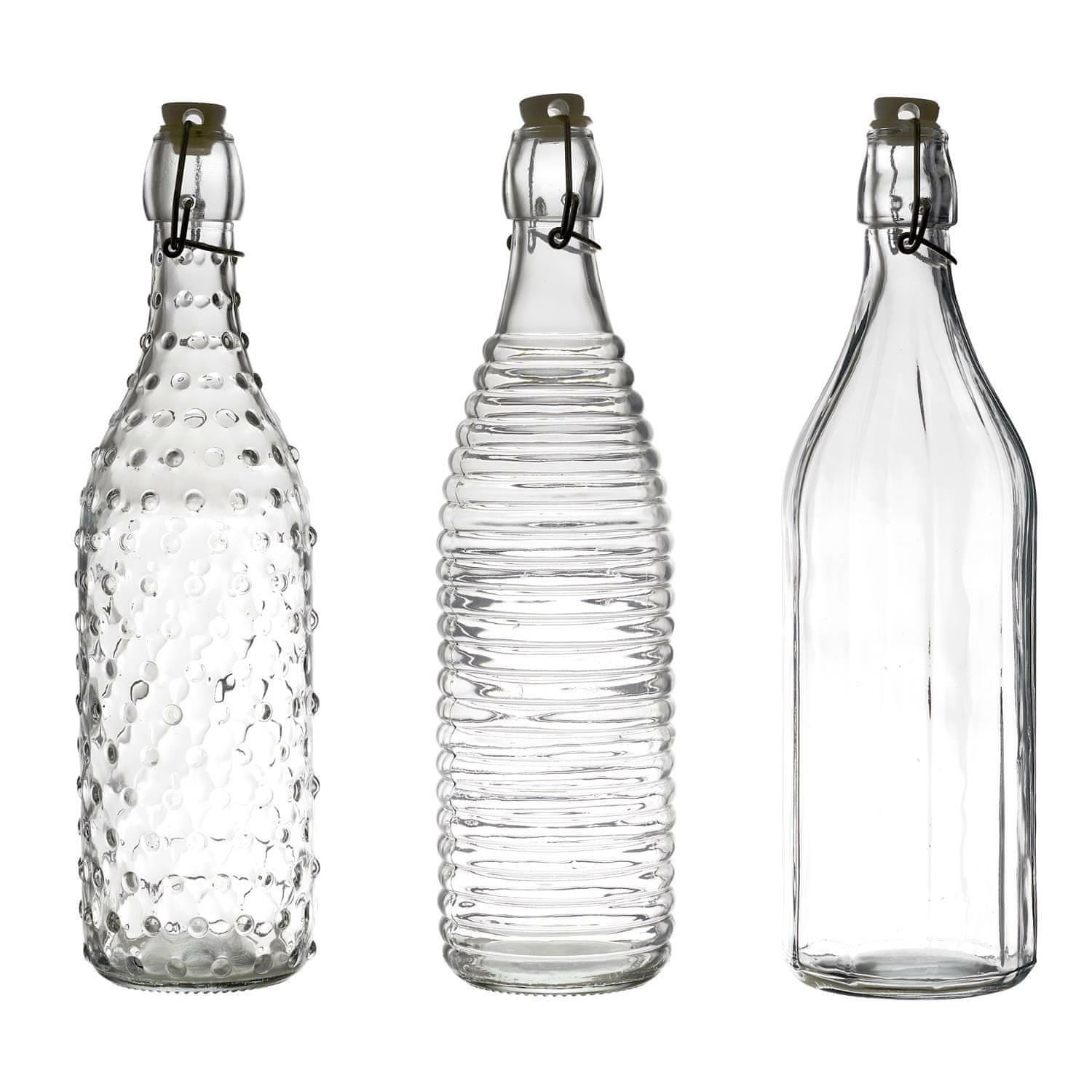 Ta okrasna steklenica je kot nalašč za sok, kis ali olivno olje. Na voljo v treh različicah kozarcev, prostornina 1 liter in zaprta s plastičnim zamaškom in kovinsko zaponko. Primeren je za pomivanje v pomivalnem stroju, mikrovalovno pečico in hrano.