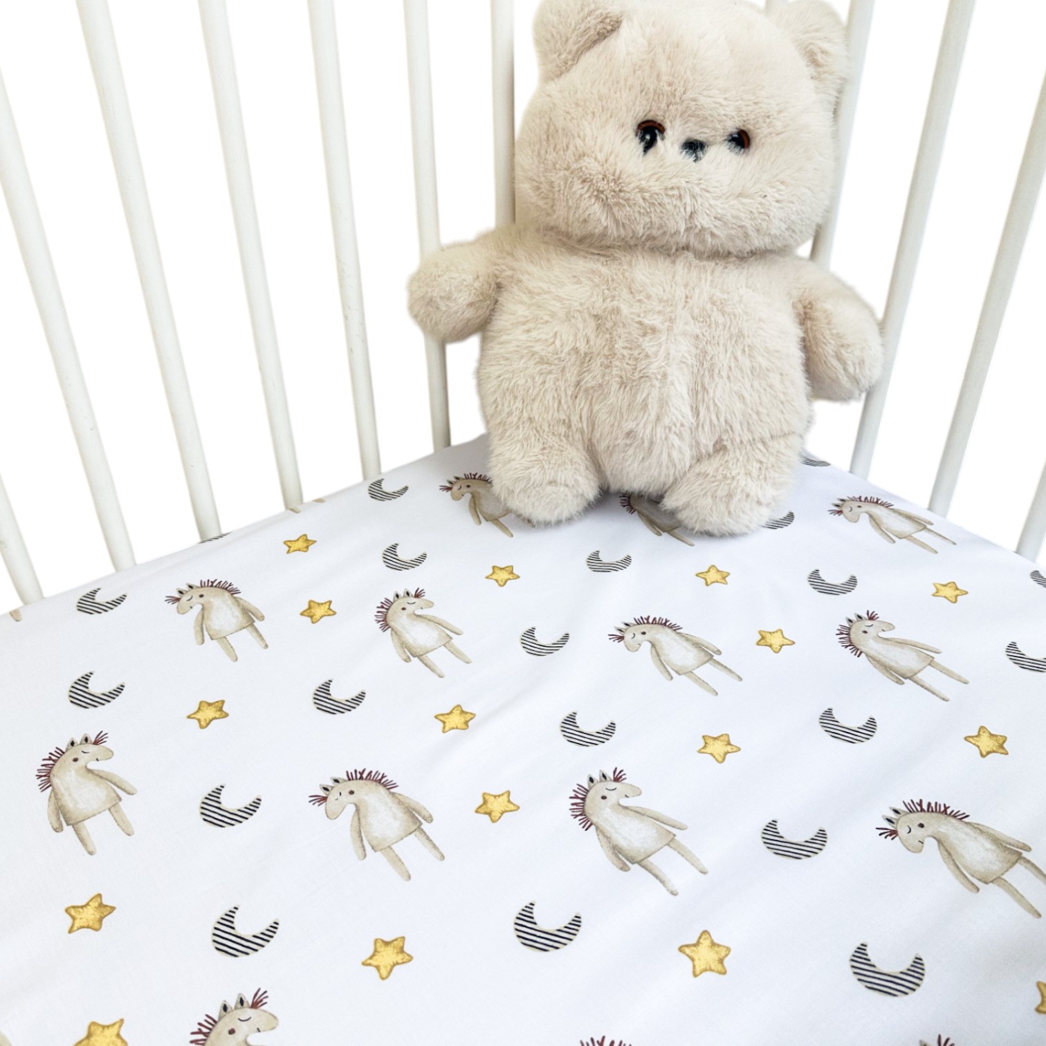 • Enostavnost uporabe: Ta klasična bela rjuha se poda k vsakemu slogu otroške sobe. Pralna je v pralnem stroju, zato jo je enostavno čistiti.