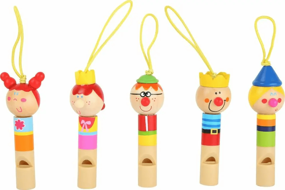 Lesena piščal v pastelnih barvah z nežnim vzorcem, proizvaja višji zvok piščali, znan npr. z romanj, veselo žvižganje razvija zanimanje za glasbo in vadi čutno zaznavanje, mere: dolžina 12 cm, max Ø 2 …