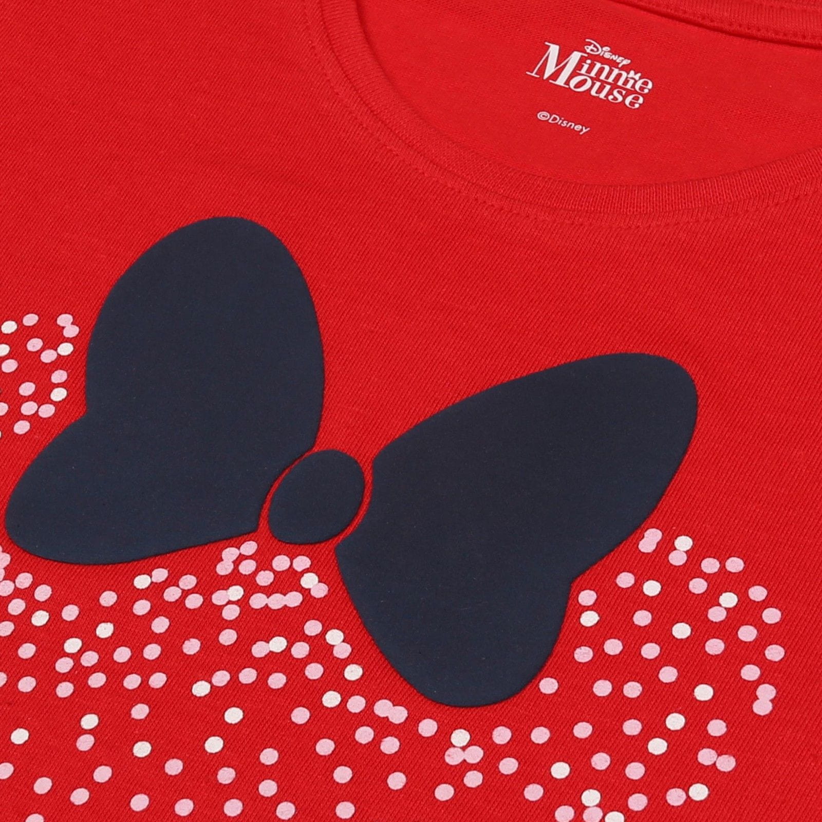 • Stišen dizajn – rdeče hlače s potiskom Minnie v kontrastnih barvah.