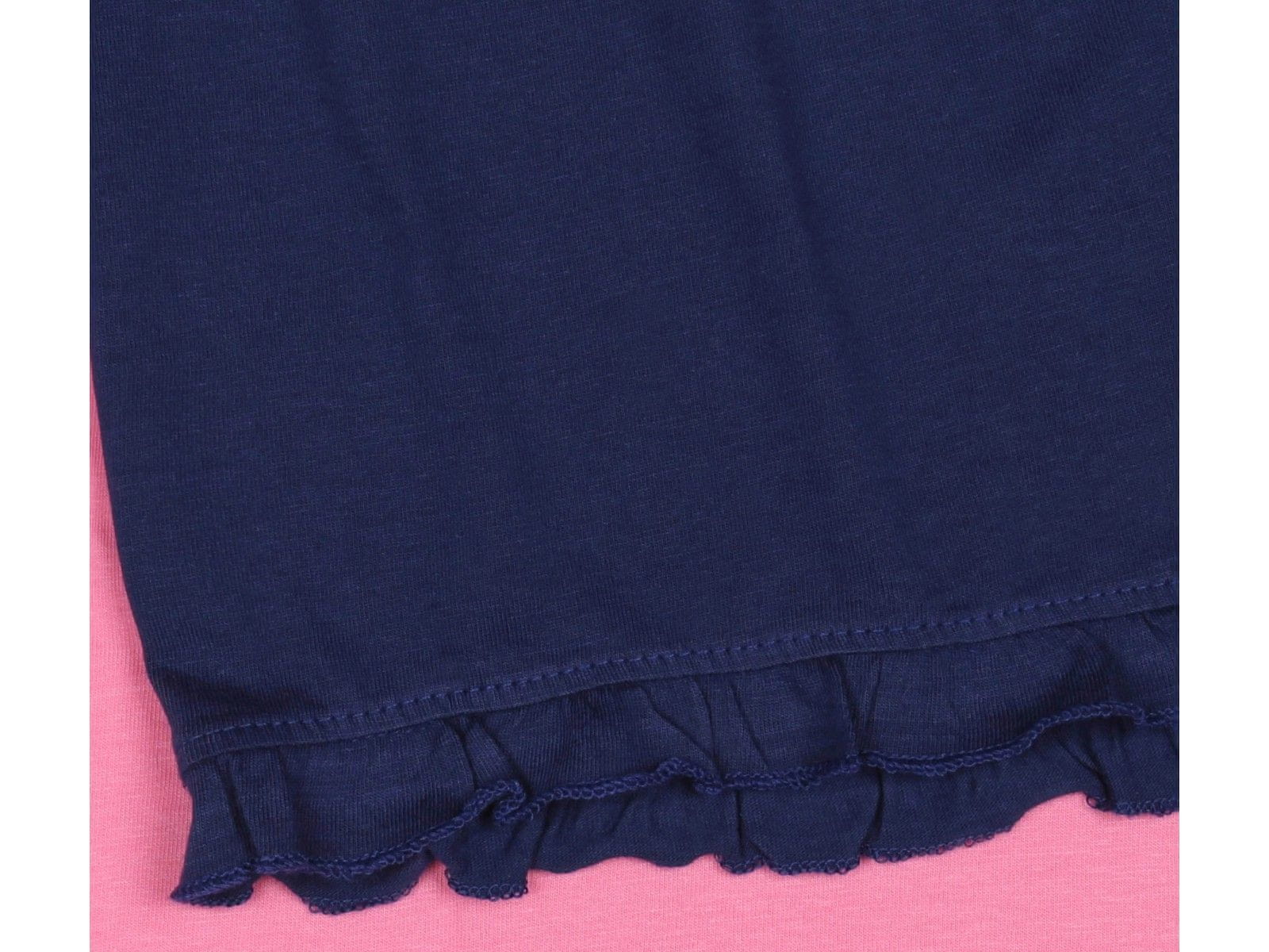 Roza-temno modra, dekliška, dvodelna pižama s kratkimi hlačami in potiskom ljubke Minnie Miške.