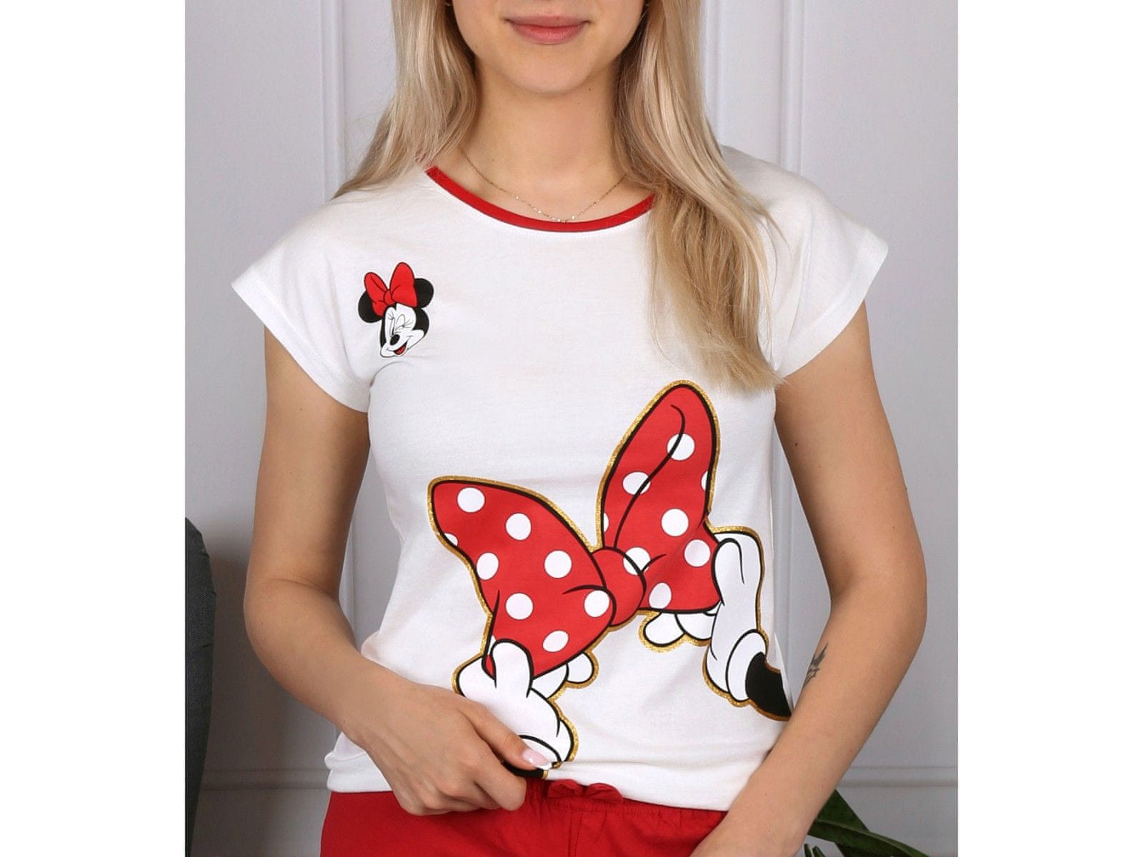 Smetano-rdeča, dekliška, kratka dvodelna pižama z motivom ljubke Miki Miške.