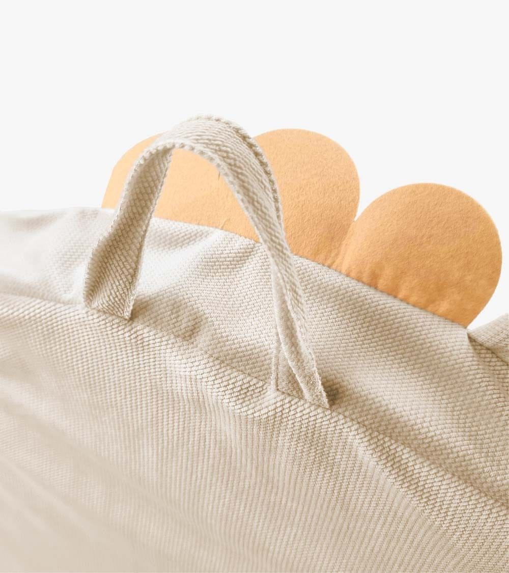 Odlično se bo podal v otroško sobo v slogu Safari. Snemljiva prevleka je izdelana iz gladke in trpežne žametne tkanine v bež barvi. Sedež ima na hrbtu odtis levjega obraza, prišita mehka ušesa in grivo iz klobučevine. Sedež ima ročaj, ki omogoča enostavno prenašanje. Na strani je prostoren žep za shranjevanje otroških knjig in igračk, v katerega lahko otrok z veseljem pospravlja stvari.