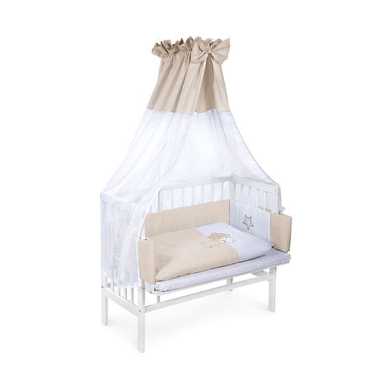 - posteljnino Piccolo C-7 sedem delno belo / bež barve: odeja (80×80cm), vzglavnik (30×40cm), prevleka za odejo, prevleka za vzglavnik, baldahin (200×140cm), rjuha, zaščitna blazina za glavo (260×20cm),