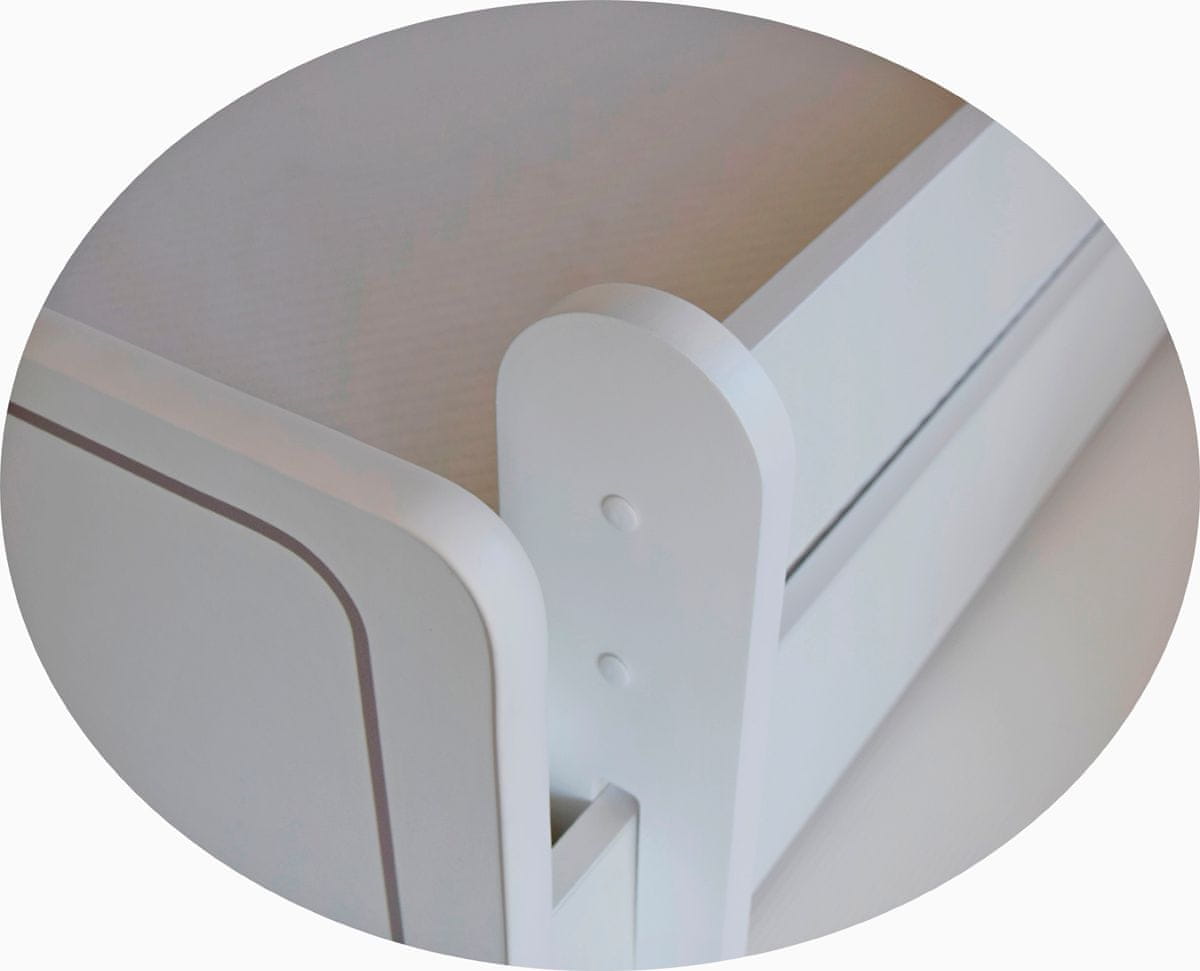 Otroška postelja s pomožnim ležiščem in vzmetnico ELISA II 80×160 cm je nekaj najboljšega, kar lahko svojim otrokom podarite za miren spanec in sladke sanje. Izdelana je v čudoviti kombinaciji bele barve z nežno roza vzorcem srčkov. Barva uporabljena za premaz je ekološka in odporna na obrabo. Postelja vključuje dodatno ležišče na koleščkih, ki bo odlična rešitev pri opremljanju manjših otroških sob ali kot ležišče za občasno spanje doma ali na vikendu ali za starše, ki imajo radi praktične rešitve in na ta način prihranijo prostor. Ročaji na pomožnem ležišču so v obliki roza srca. Varnostne ovire pred morebitnim padcem s postelje zagotavljajo varnostne ovire, ki so premične in odstranljive, zaradi česar se lahko prilagodi velikosti otroka. Da bi se izognili neželenemu udarjanju ob rob, jih ima ta edinstvena postelja zaobljene, zaradi česar je postelja varnejša. Njene skupne dimenzije (ŠxGxV): 85×164×70 cm, pomožno ležišče (ŠxGxV): 80×160×15 cm. Postelja je opremljena z lamelnimi letvicami s sistemom Flex in vzmetnicami iz pene. Dimenzija zgornjega ležišča je (DxŠxV): 160×80×7 cm, velikost spodnjega ležišča je 80×145×7 cm, velikost zgornje spalne površine (ŠxG): 80×160 cm, velikost spalne površine pomožnega ležišča 80×145 cm. , ovire pa so dolge 80 cm. Material za izdelavo ležišča je kakovosten laminiran DTD z obrobljenimi PVC robovi. Osnova funkcionalne in praktične otroške sobe je otroška postelja, ki zagotavlja udobno in nemoteno miren spanec. Razveselite sebe in svoje otroke s posteljo Elisa II.