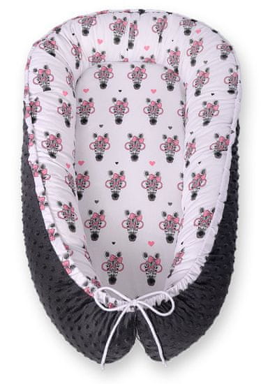 shumee Otroški kokon, dvostranski, stajica, previjalnik, Premium BOBONO minky - roza zebre