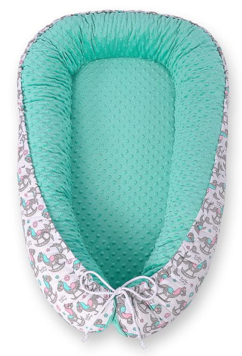shumee Otroški kokon, dvostranski, stajica, previjalec, Premium BOBONO minky - gugalni konjički