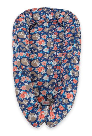 shumee Otroški kokon, obojestranski, stajica, previjalnik, Premium BOBONO - lisičja družina na modrem