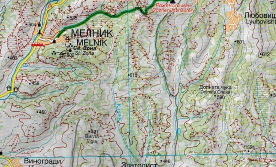 Zložljiv, dvostranski turistični zemljevid Pirina v merilu 1 : 50.000, ki ga je izdala bolgarska založba DOMINO.