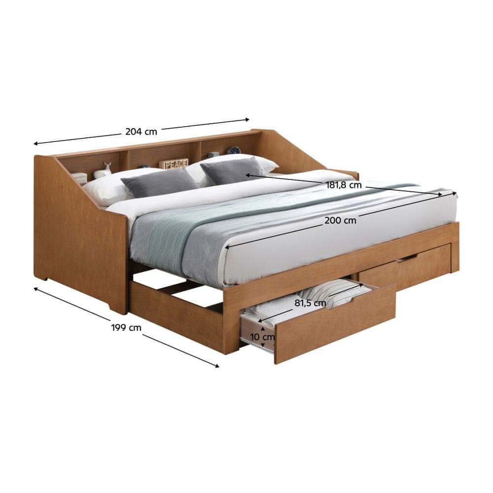 KONDELA Raztegljiva postelja s prostorom za shranjevanje Moneta - hrast