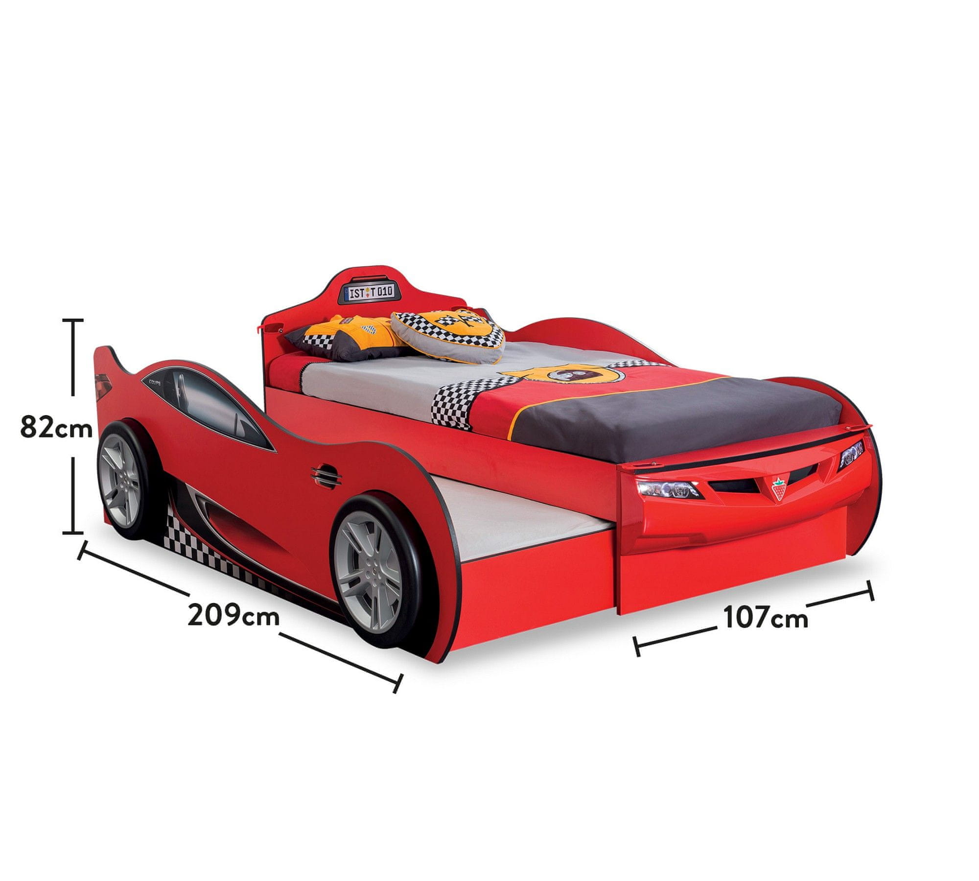Woody Fashion Avtomobilska postelja, Race Cup Carbed (s prijateljsko posteljo) (rdeča) (90X190 - 90X180)