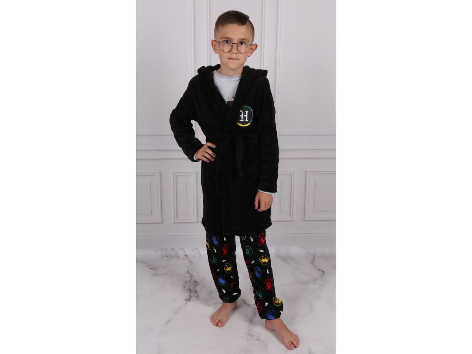 sarcia.eu Harry Potter Hogwarts Črn, topel fantovski kopalni plašč, zavezovanje, s kapuco OEKO-TEX 6-7 lat 116-122 cm