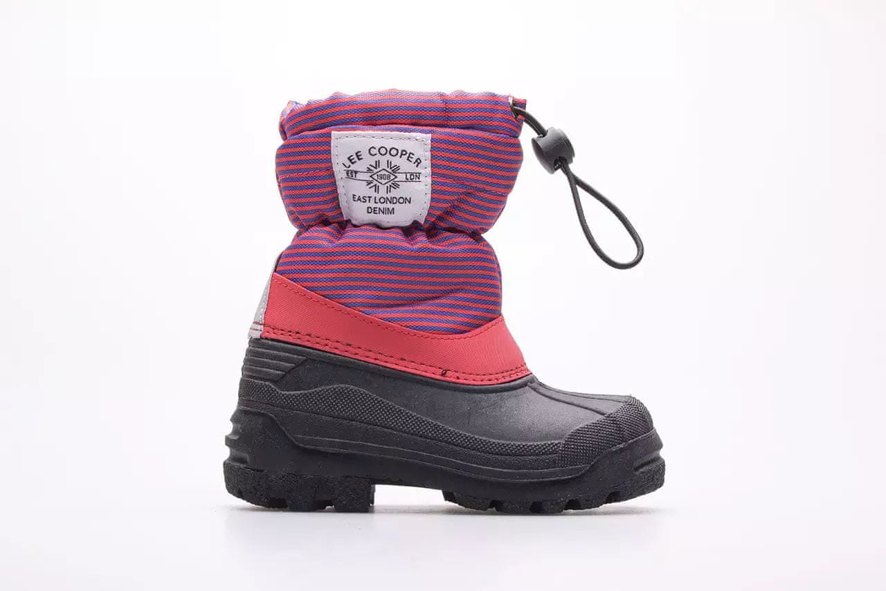 Lee Cooper in winter… je popoln par! Snežne copate Lee Cooper bodo vašemu otroku zagotovile optimalno toplotno udobje med nizkimi temperaturami. Gumijasti škorenj učinkovito ščiti pred vlago, visok zgornji del, ki ga zaključuje elastičen rob z našitkom, pa ščiti stopalo pred mrazom in snegom. Otroški snežaki so izdelani iz visokokakovostnih materialov, zato vam bodo ob pravilni uporabi služili več sezon. Lee Cooper so najboljša izbira za zimo!