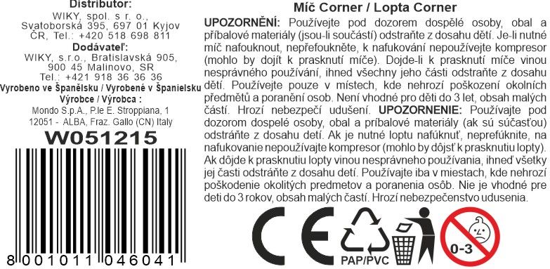 Míc Corner ni napihnjen. Velikost 22 cm. 3 različice – modra, bela, rdeča