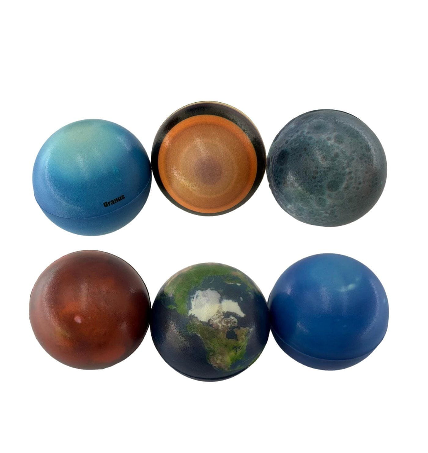 Zabavna mehka žoga, ki je videti kot planeti sončnega sistema. Celoten opis