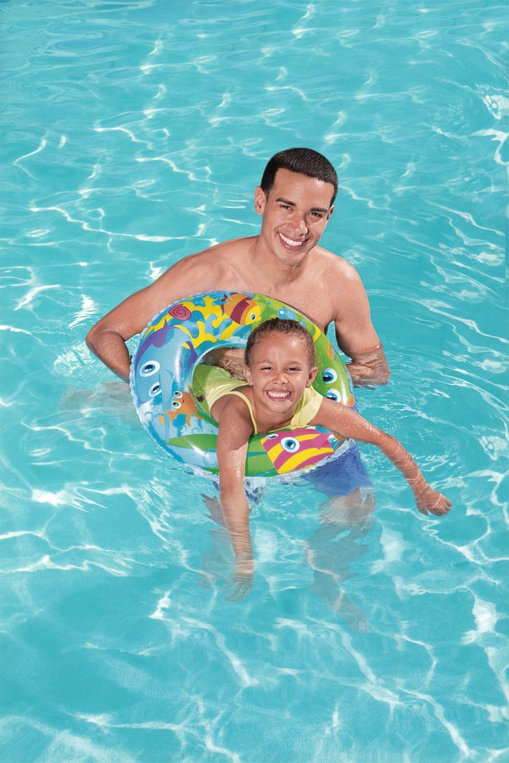 Krog za plavanje z veselim otroškim motivom je izdelan iz visokokakovostnega vinila in je primeren za otroke, stare od 3 do 6 let. Premer kroga je 56 cm in je na voljo v dveh različicah.