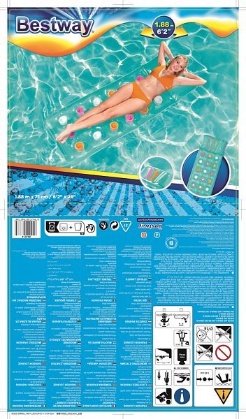 Bestway Napihljiv ležalnik s podporo za glavo, 188 x 71 cm