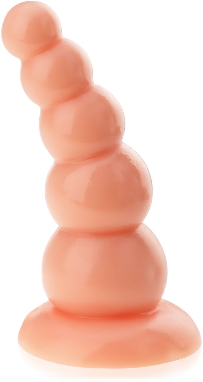 Velik, mesnat analni dildo v obliki kroglice, gelski analni penetrator za moške in ženske. Popolne oblike, ki se popolnoma prilagodi anusu, nežno ukrivljen za optimalno stimulacijo. Z naraščajočim premerom izdelek boža anus in zagotavlja prijeten občutek počasnega, globljega polnjenja in raztezanja. Dildo je nameščen na močnem prisesku, ki omogoča pritrditev na katero koli gladko površino za prostoročno zabavo božanja.