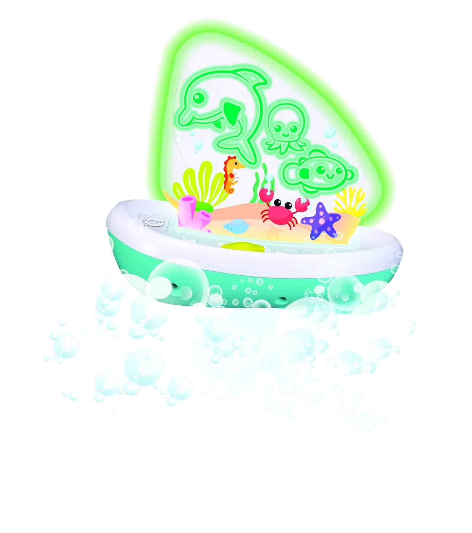 Največja privlačnost tega čolna je možnost osvetlitve jadra v 9 različnih barvah Samo pritisnite gumb, da sprožite svetlobno predstavo, ki bo zagotovo pritegnila otrokovo pozornost in naredila kopanje še bolj fascinantno Barvite lučke ne le osvetljujejo vodo, temveč tudi pomagajo razvijati vizualno zaznavanje vašega malčka
