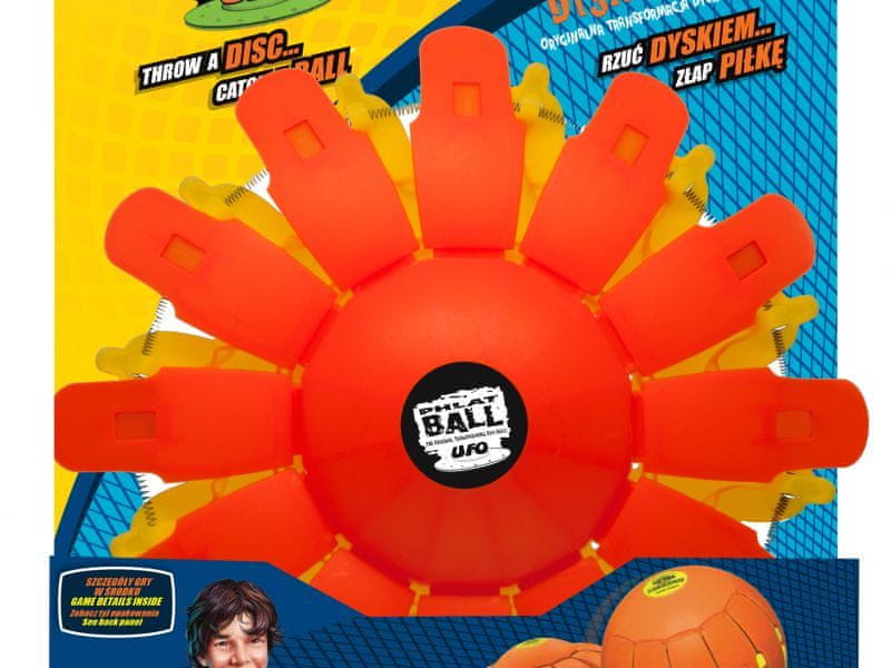 Flying Discusball UFO Ball DiscA igrača priznanega proizvajalca – EPEE Žoga za razliko od vseh drugih Unikatna športna igrača, ki se iz letečega diska spremeni v žogo! Osvežen in bolj aerodinamičen dizajn naredi Ufo še dlje, zaradi česar je igranje bolj nepredvidljivo! Pustite se presenetiti z odločnim gibom! Prehod iz ene oblike v drugo se zgodi nepričakovano, zato nikoli ne veste, v kakšni obliki se bo znašla v vaših rokah. Estetska, barvita embalaža naredi igračo popolno za darilo – odpakirate jo in odkrijete nenavadno vsebino! bo zelo zabavno za vse. Lepe, žive barve vas bodo zagotovo spodbudile k raziskovanju možnosti nove igrače, ki zagotavlja dolge ure očarljive zabave. Kakovost in varnost. Disk žoga je izdelana iz visokokakovostnega, certificiranega materiala. Igrača nima ostrih robov ali elementov, ki bi lahko povzročili poškodbe. Popolna varnost uporabe potrjuje evropski varnostni certifikat CE. Velik izbor barv: Oranžno-rumena Vijolično-črna Krogla: premer 20 cm. cm Aerodinamičen dizajn 3 barvne različice na izbiro Dimenzije embalaže: 27×22×6 cm