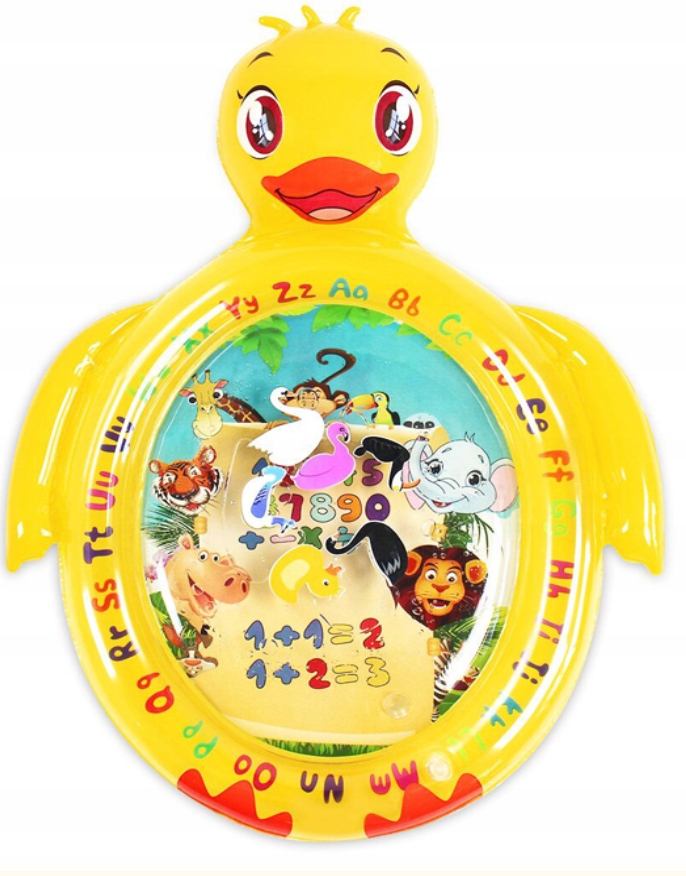 Podloga s 6 pisanimi plavajočimi igračami. Ko jih dojenček pritisne in jih poskuša zgrabiti, se igrača premakne z mesta na mesto.