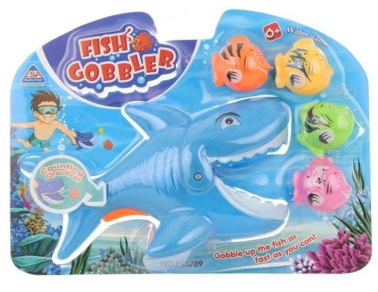 Vodna igra lovljenja rib. Z morskim psom ujemite pritrjene ribe. Primerno za obogatitev treninga plavanja in potapljanja ali za uporabo v domačem bazenu (pod nadzorom odrasle osebe). Paket vsebuje morskega psa in štiri pisane ribe. Primerno za otroke od 6. leta starosti dalje.