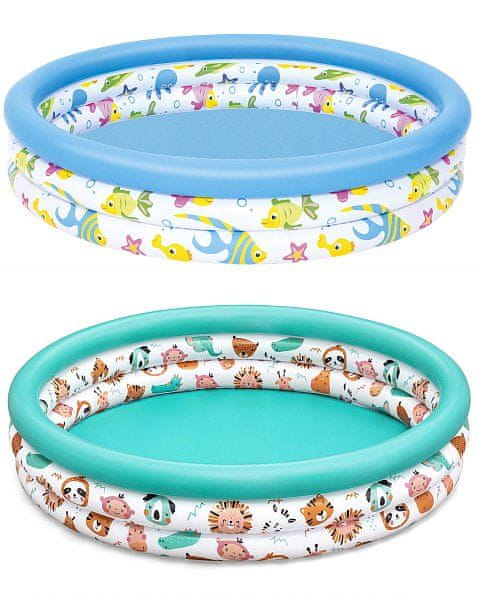 V vročih poletnih dneh ni boljše osvežitve za vaše najmlajše kot napihljiv bazen! Bazen je primeren za veslanje. Trikomorni napihljivi bazen s prikupnimi motivi. Bazen je izdelan iz visokokakovostnega PVC z debelino 0,19 mm. Vsebina: 1× bazen, 1× obliž za popravila. Assort je naključna mešanica modelov. Na izbor ni mogoče vplivati. Dimenzije napihnjenega bazena: 122 × 25 cm. Dimenzije nenapihnjenega bazena: 112 × 112 cm. Dimenzije paketa: 27,5 × 28 × 3,3 cm. Prostornina bazena: 140 l. Uporabljajte samo pod nadzorom odrasle osebe. Starost: 2+
