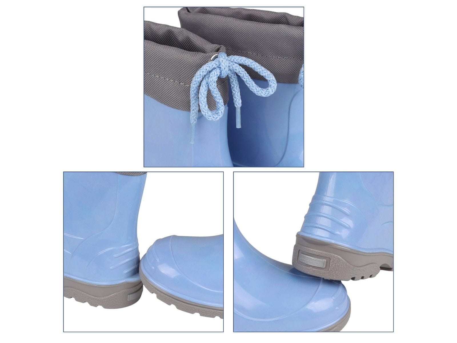 Izdelani so iz vodoodpornega materiala, ki učinkovito ščiti otrokova stopala pred vlago in blatom.