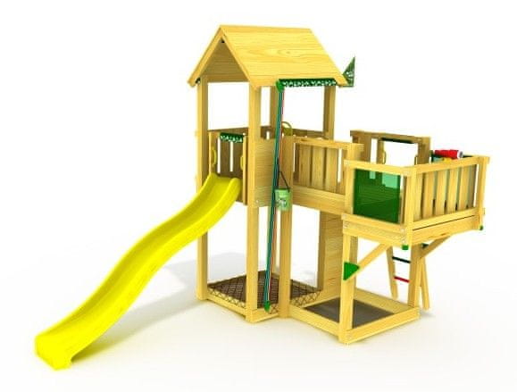 Igralni stolp Falcon je narejen iz trajnostnega lesa in ponuja dodatno zabavo za male pustolovce s toboganom in plezalno steno.