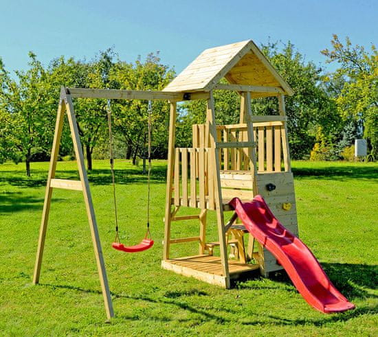 Opomba: igralni stolpi niso predhodno obdelani. Da bi čim dlje ohranili vizualno stanje, priporočamo, da les hiške vsako leto obdelate z nego za les.