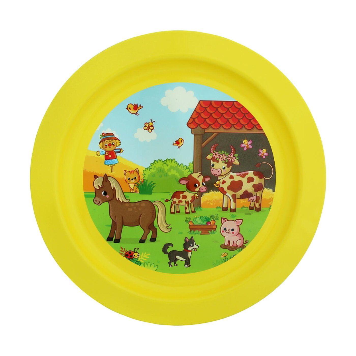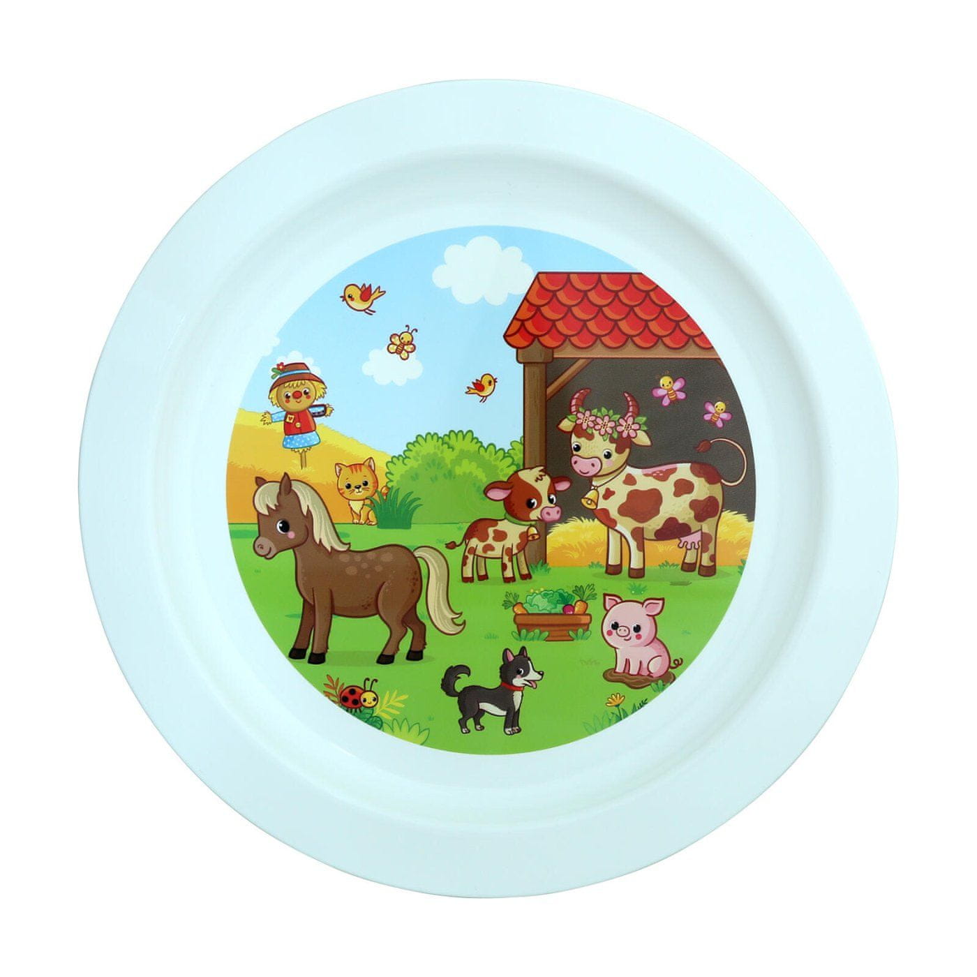 Detski plastični krožnik s potiskom – dekor FARMA – namenjen manjšim otrokom.