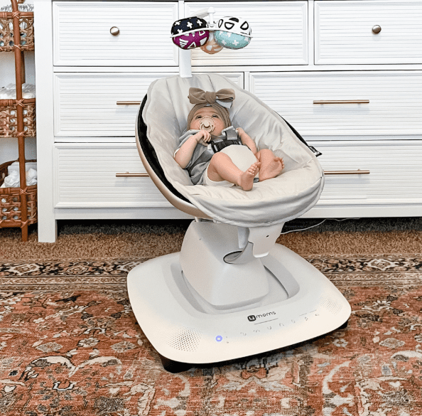 1. Otroški gugalnik mamaRoo je namenjen uporabi dokler vaš malček ne doseže 11,3 kg ali poskuša splezati ven (približno 9 mesecev).