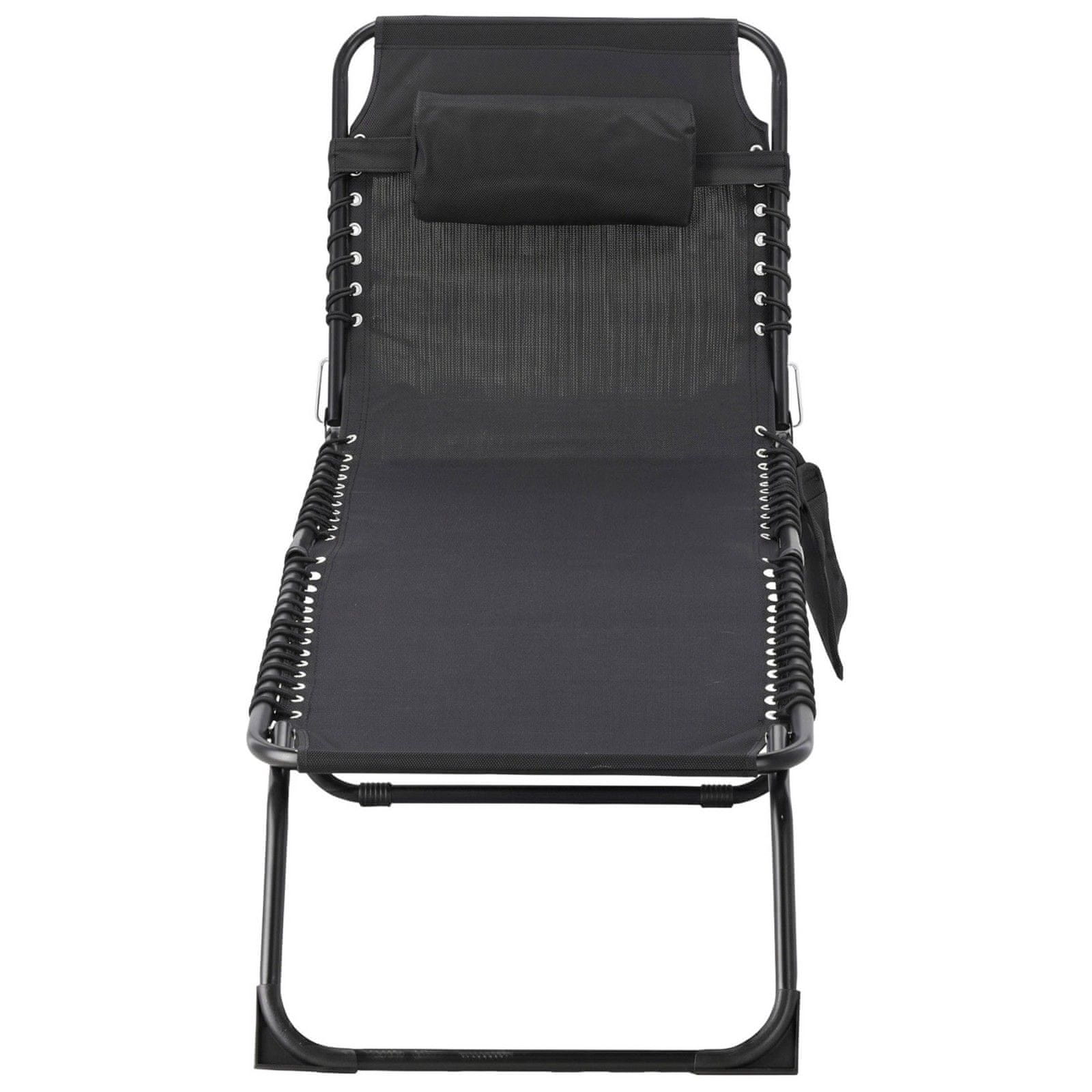 GARDEN LINE Črn vrtni ležalnik z naslonjalom za glavo in žepom, ležalnik, plažni stol 190x58x30cm