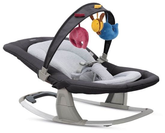 Okvir s svojo ukrivljeno obliko izgleda elegantno, hkrati pa otroška tudi nežno ziba naprej in nazaj. Ležalnik za dojenčka je primeren za uporabo od rojstva dalje. Da bo Vaš otrok v ležalniku čimbolj udobno nameščen poskrbi tudi notranji reduktor-vložek. Naslonjalo ležalnika za dojenčka je možno nastaviti na 3 položaje.Material, oblazinjenje ležalnika za dojenčka je iz zračnega žerseja in ima 3D mrežico, ki omogoča boljše kroženje zraka.