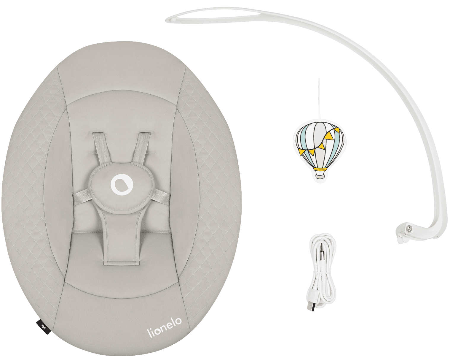 Starši bodo cenili intuitivno upravljanje preko nadzorne plošče na dnu naprave in praktičen snemljiv lok z igračami, ki spodbuja otrokovo pozornost. Gugalnik je lahek in enostaven za premikanje po stanovanju, podstavki z nedrsečimi podlogami pa ščitijo vaša tla pred praskami. Za vzdrževanje higiene poskrbi snemljiva prevleka, ki je primerna za strojno pranje.