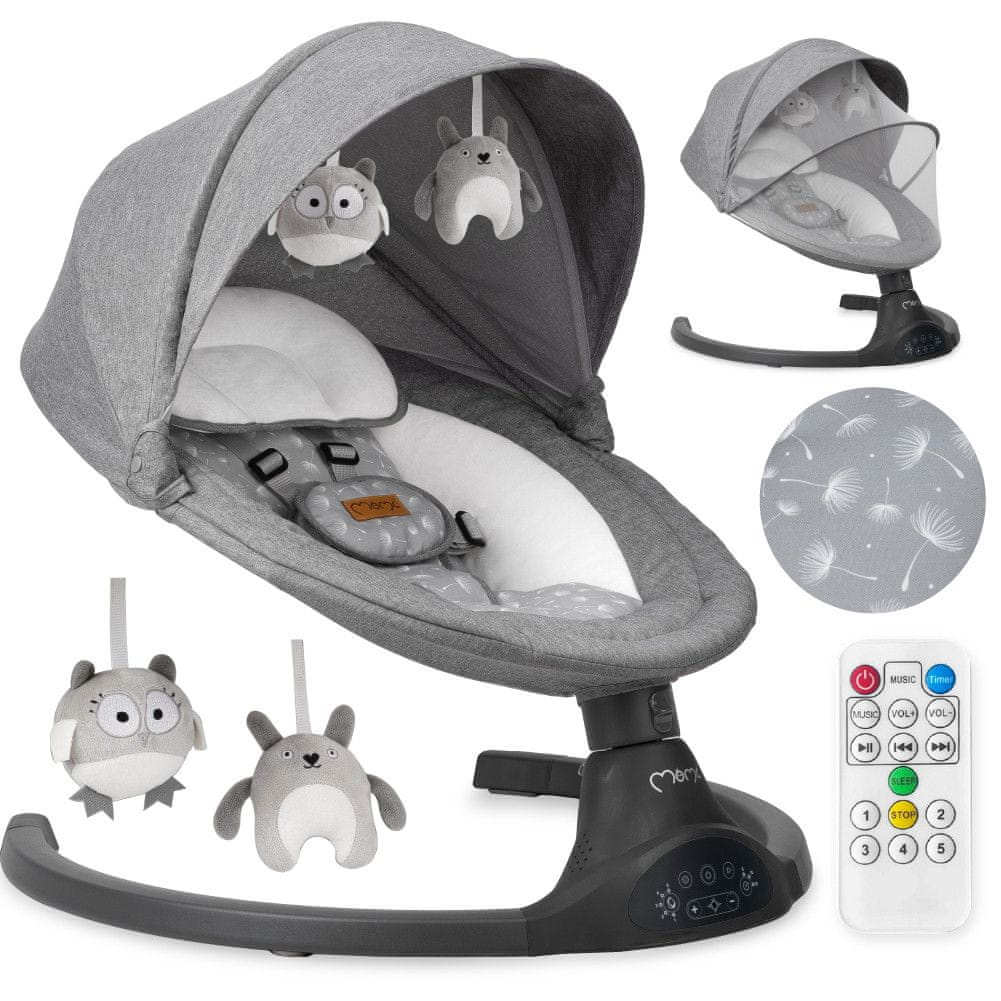 Spoznajte izjemen otroški gugalnik MoMi Kenani, ki vam bo nudil varen in udoben prostor za vašega dojenčka! Medtem, ko vaš otrok uživa v gugalniku, imate vi lahko čas zase in po potrebi spreminjate nastavitve gugalnika, kar od daleč s priloženim priročnim daljincem.
