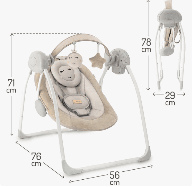 Momi Liss otroški gugalnik, 5 hitrosti, 8 melodij, bež