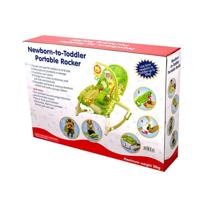Čudovit naslanjač, ki raste skupaj z vašim otrokom! 2 viseči igrači bosta otroka dolgo zabavali, nežne vibracije pa ga bodo pomirile. Celoten opis