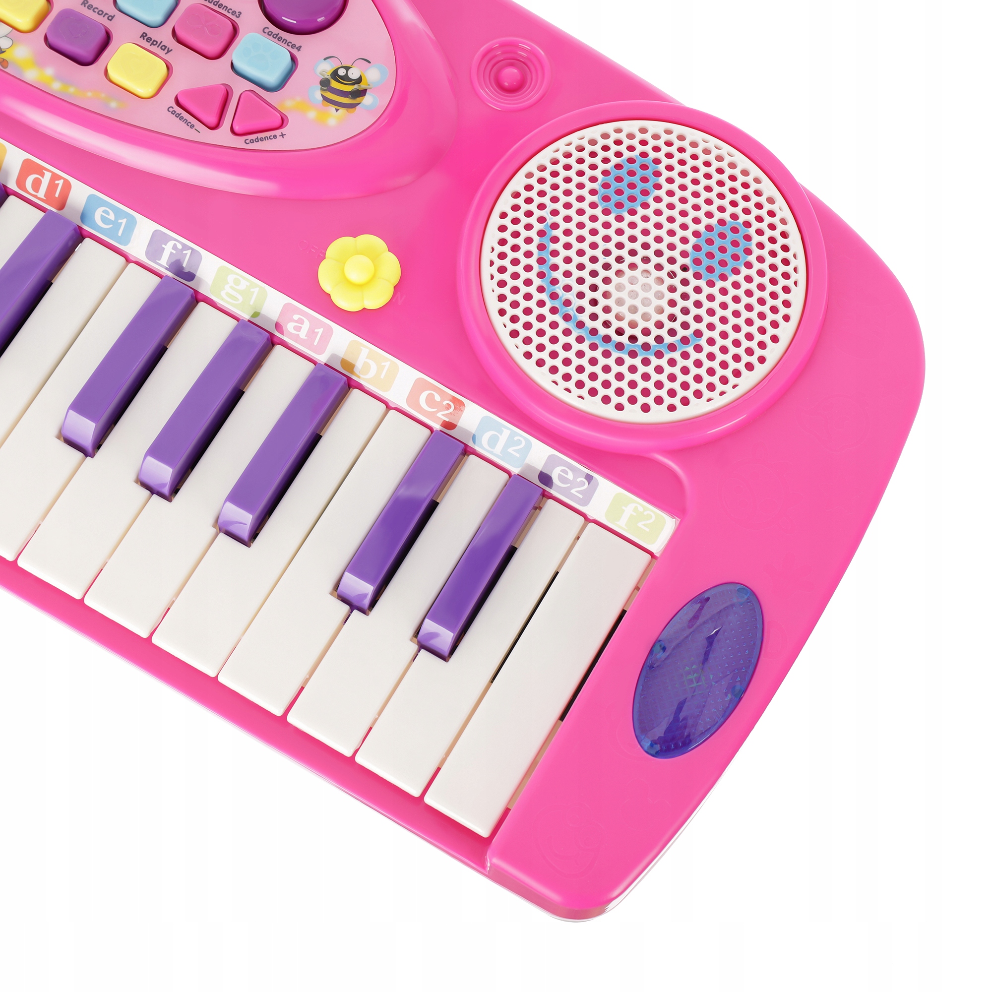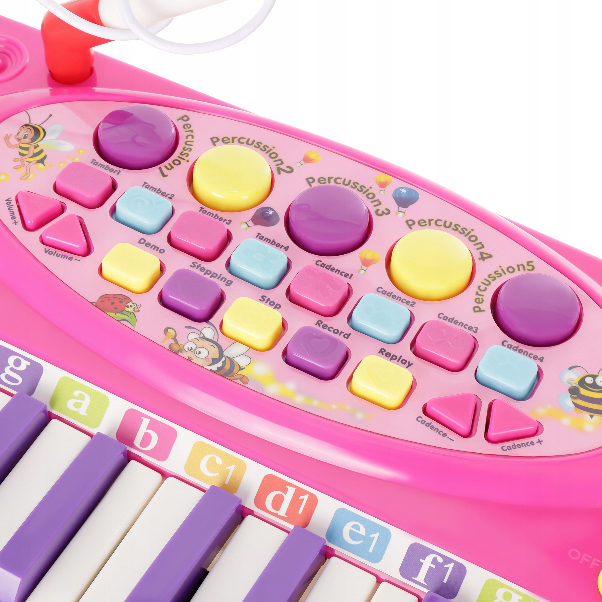 Rožnate orglice so opremljene s pravim mikrofonom, v katerega lahko vaš malček poje ob glasbi, ki se predvaja iz igrače, ali melodiji, ki jo sam sklada. Z orglami je povezan s posebnim kablom, tako da se otrokovo petje posname skupaj z glasbo, ki se igra na klavirju.