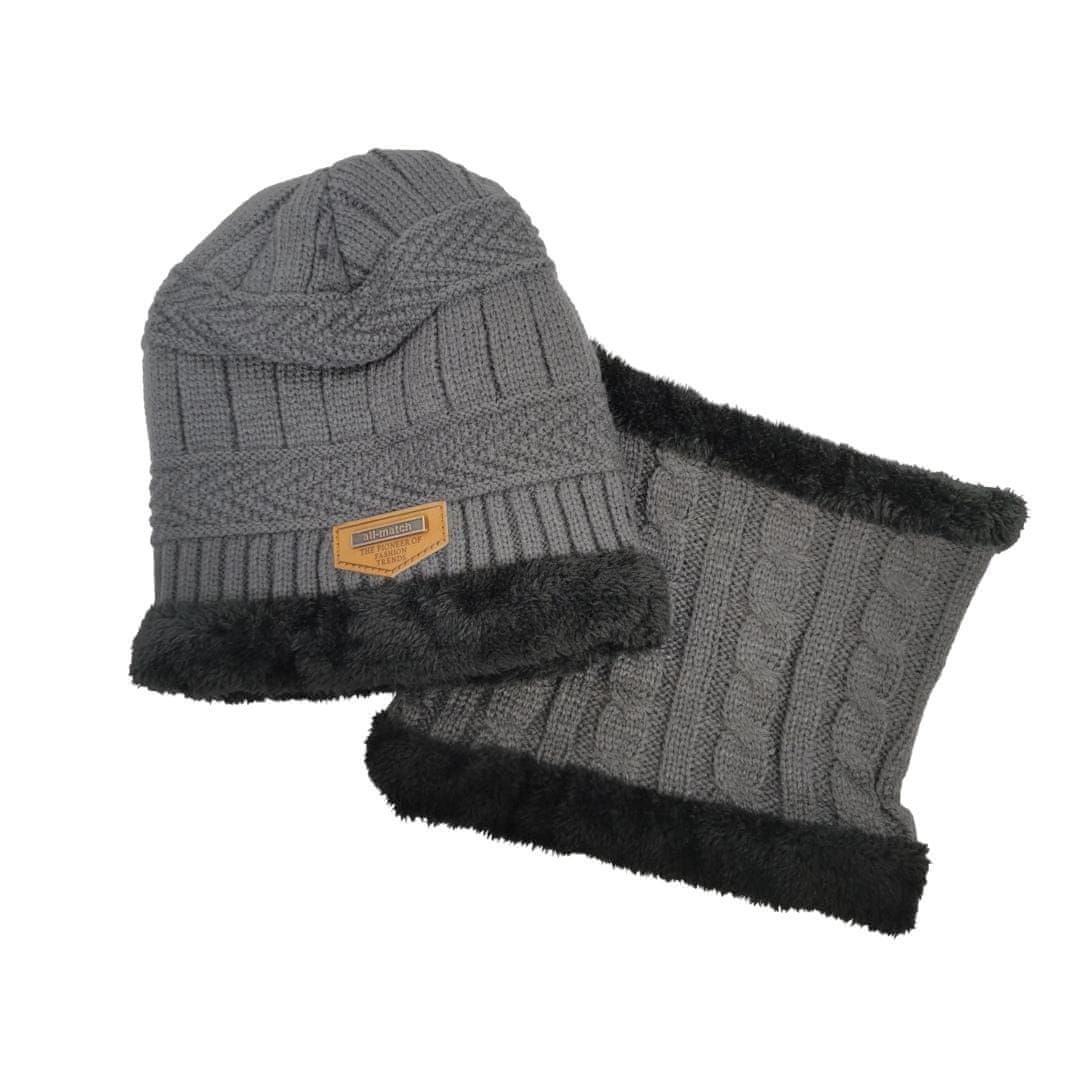 VivoVita Winter Beanie 2v1 – Termo kapa in šal, rjava/siva