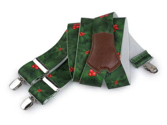 Šali, potiskani z božičnimi motivi, bodo navdušili vse ljubitelje adventa. Z njimi se boste zabavali na družinskih fotografiranjih, božičnih zabavah in silvestrovanjih. So visokokakovostne češke izdelave, elastičen material pa omogoča udobno nošenje. Hrbtni vložek iz eko usnja jim daje eleganten videz. Na hlače so pritrjene s tremi japonkami – dvema spredaj in eno zadaj. Žabice imajo v notranjosti gumijasto površino, ki preprečuje uničenje hlač.